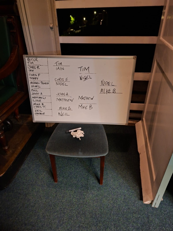 Everyone did their bit with refereeing during the evening and clearing the room afterwards – greatly appreciated.